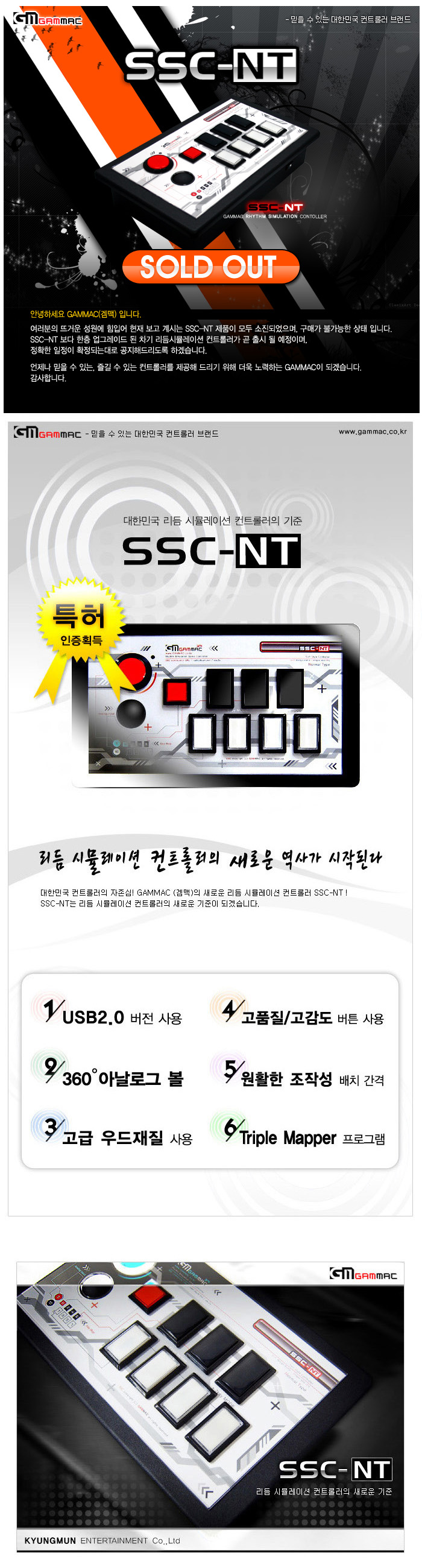 안녕하세요 GAMMAC(겜맥)입니다. 12월 24일 리듬시뮬레이션 컨트롤러 SSC-NT를 출시하였습니다. 오랜시간 기다려주신 구매자분들께 감사한 말씀을 전합니다. 온라인 예약판매 행사기간내에 구매하신분들에 한해 금일부터 모두 발송처리가 되며, 행사기간은 기존 공지해드린바와 같이 12월 26일까지입니다. 다시한번 예약/구매자분들께 감사에 말씀을 전하며, 연말연시 좋은일들만 가득하시길 빌겠습니다. 앞으로도 꾸준한 관심과 사랑 부탁드립니다. 감사합니다.