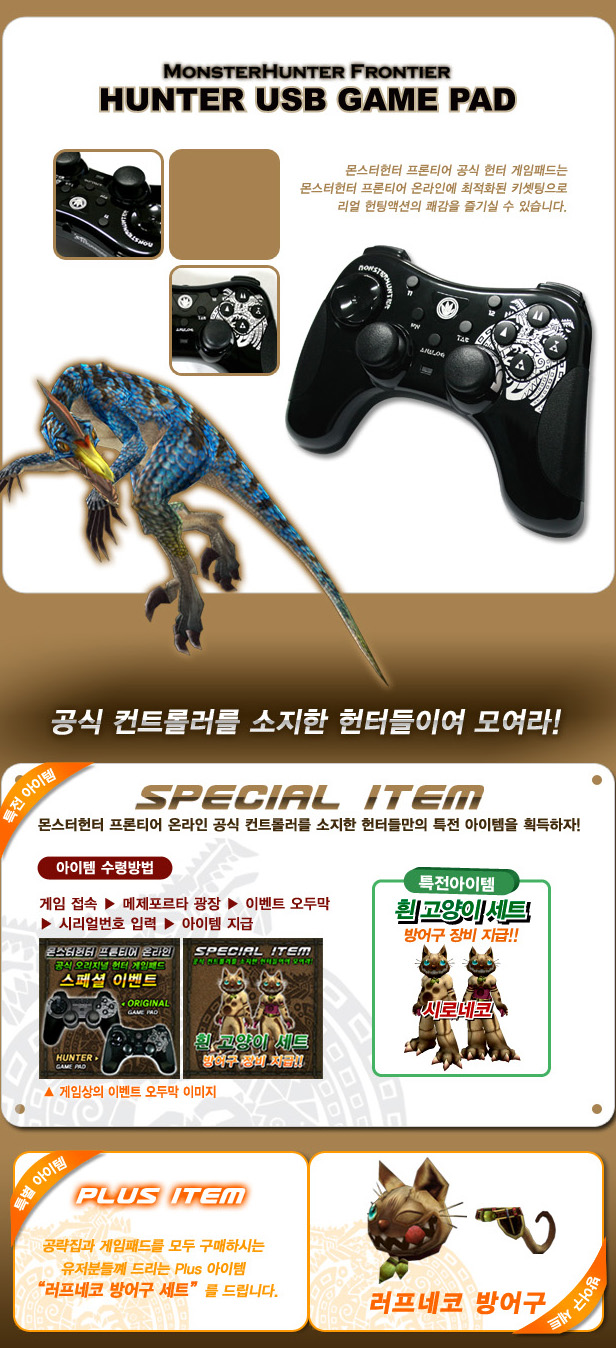 공식 게임컨트롤러 '몬스터헌터 프론티어 헌터 게임패드' 를 8월 20일부터 판매를 시작 하였습니다.