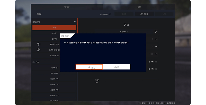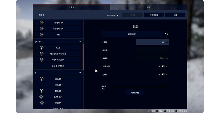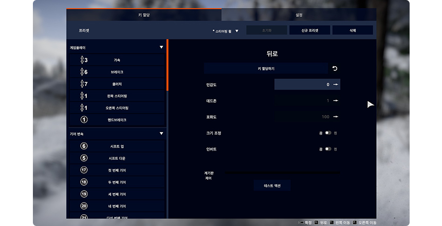 ![]() 게임 실행 > 설정 > 조작 선택