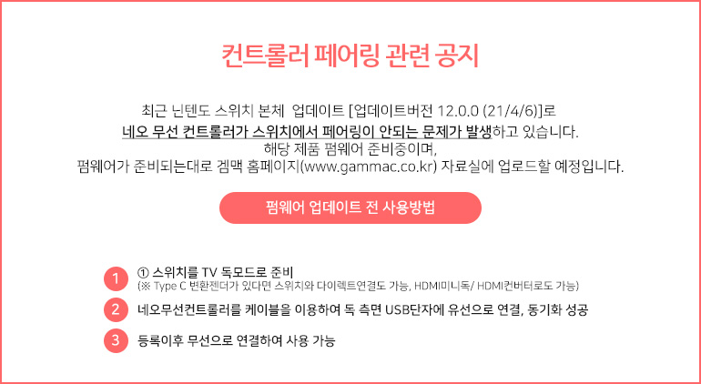네오 무선 컨트롤러 스위치 업데이트 이후 연결 방법