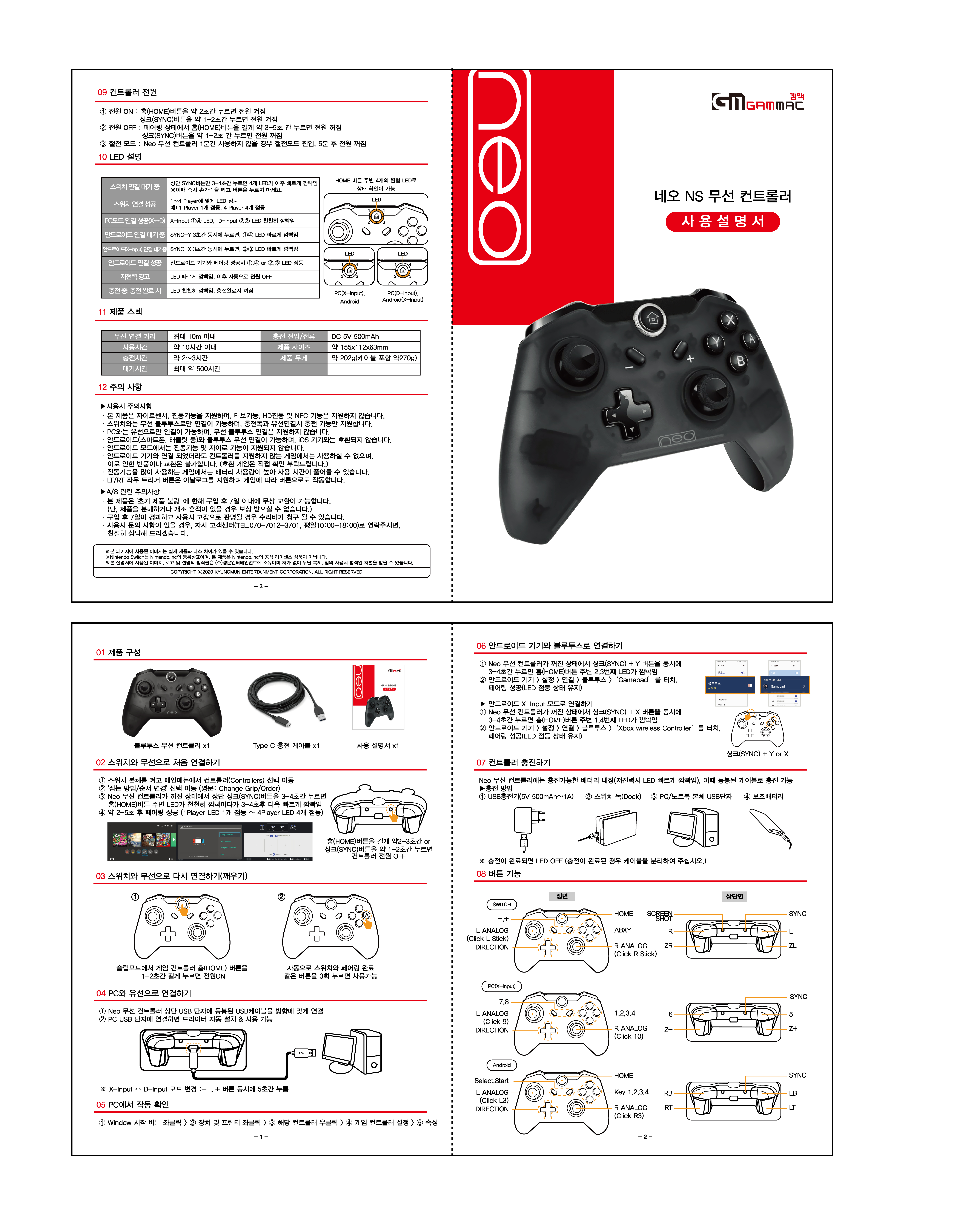 네오 NS 무선 컨트롤러 3세대 메뉴얼