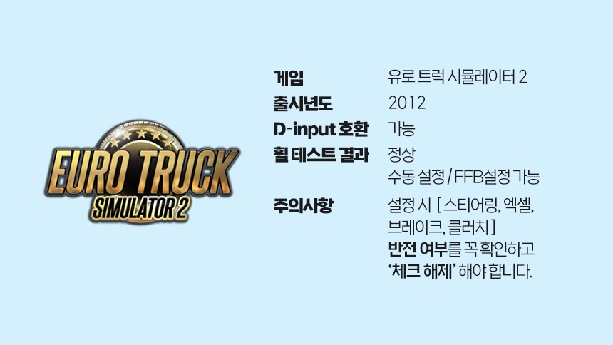 | 엘리트 레이싱 휠 유로트럭 시뮬레이터 2 & 아메리칸트럭 시뮬레이터 설정방법 | 관리자 | 2023-08-02 |