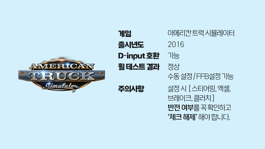 안녕하세요. 겜맥입니다 :) 엘리트 레이싱 휠 유로트럭 시뮬레이터 2 & 아메리칸트럭 시뮬레이터 설정방법입니다. 차근차근 따라해보세요!