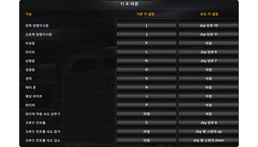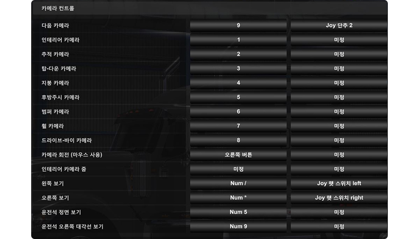 ※유로트럭2 와 아메리칸트럭은 기본적으로 거의 동일한 게임입니다. 설정방법 또한 같습니다. 영상에서는 설정방법에 조금 차이가 있으나 궁극적으로는 같습니다. 어떤 방법으로 하셔도 무방합니다. 그외 세세한 설정은 게임 하시면서 직접 변경하시는걸 추천드립니다.