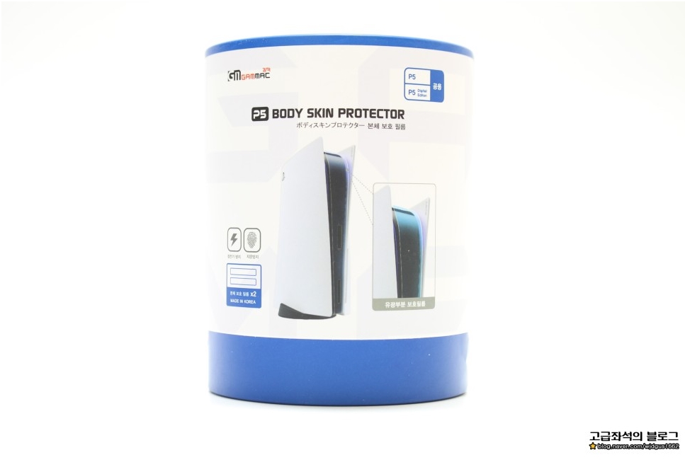 패키지는 이렇게 원통형으로 되어있었습니다! PS5본체의 유광면을 완벽하게 보호할 수 있는 바디 필름으로 먼지와 스크레치를 방지하며 지문 방지를 통해서 항상 깨끗한 상태의 PS5로 유지를 할 수 있습니다!