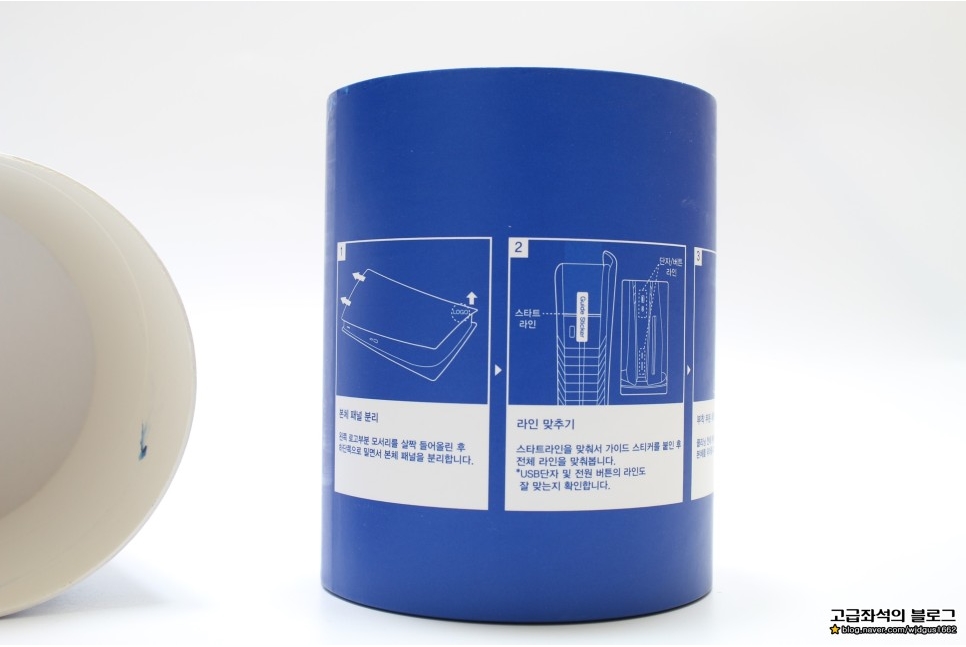 부착하는 방법은 이렇게 원통형 패키지 박스에 그림으로 나와있기 때문에 어렵지 않게 따라할 수 있을듯 했습니다.
