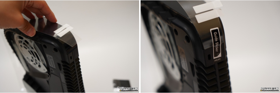 가이드 스티커를 부착한 다음에 클리닝 천과 스프레이로 PS5 유광부분에 남아있는 먼지와 유분기를 깔끔하게 제거해주었습니다! 사용하고도 클리닝 스프레이 양이 많이 남아서 PC 모니터나 TV를 닦는데 사용해도 좋을듯 했습니다!