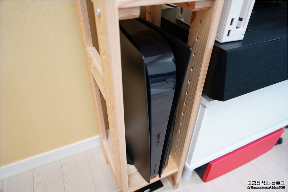 이렇게 다시 선반에 PS5를 올려두고 보니 평소 생활먼지와 스크레치에 대해서 안심할 수 있었습니다!