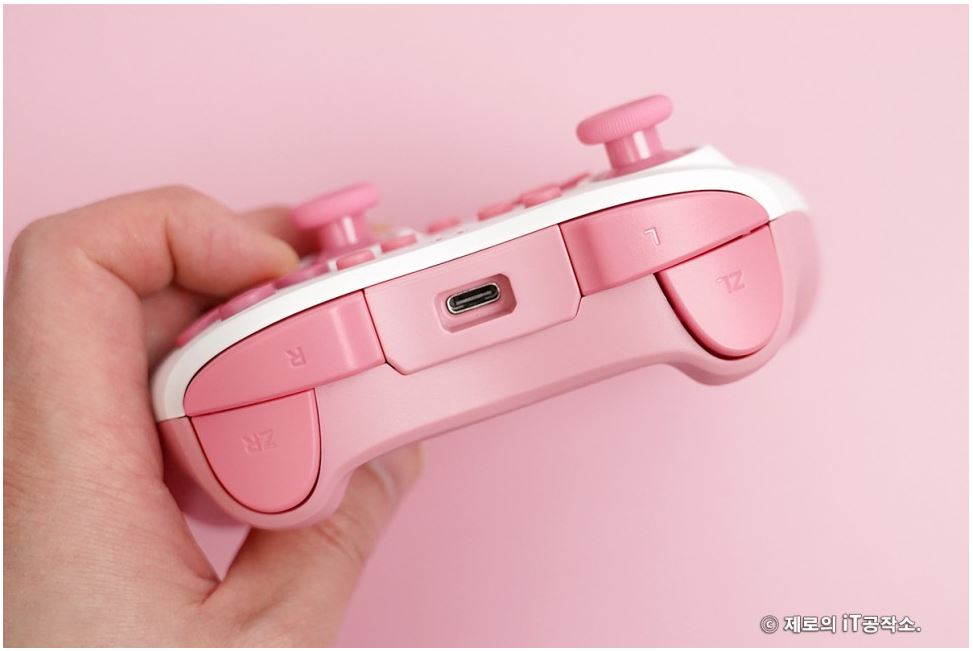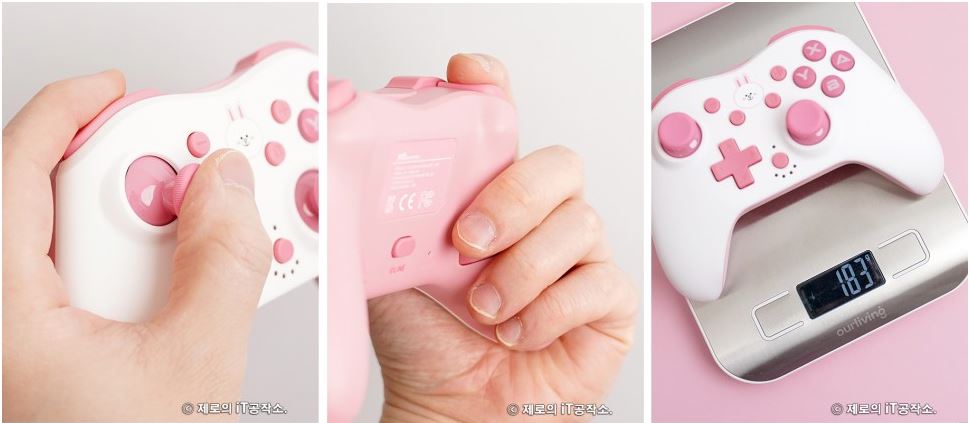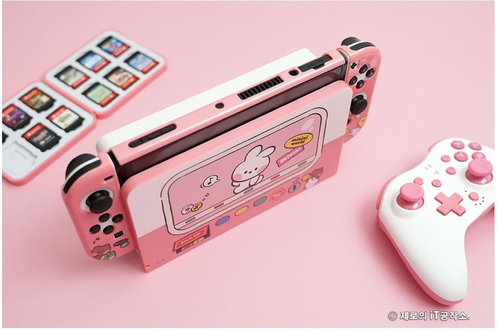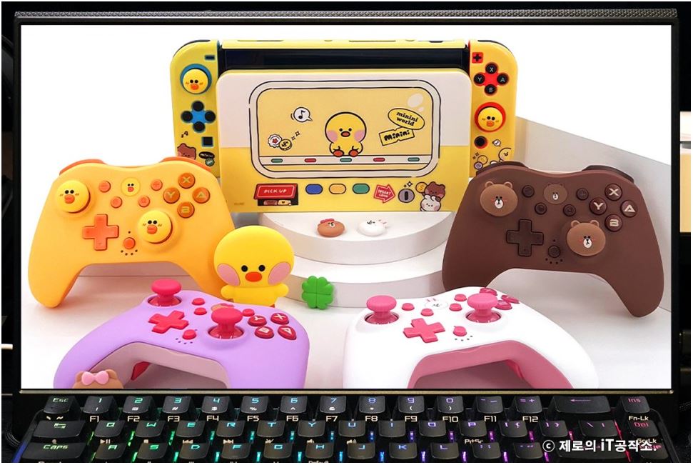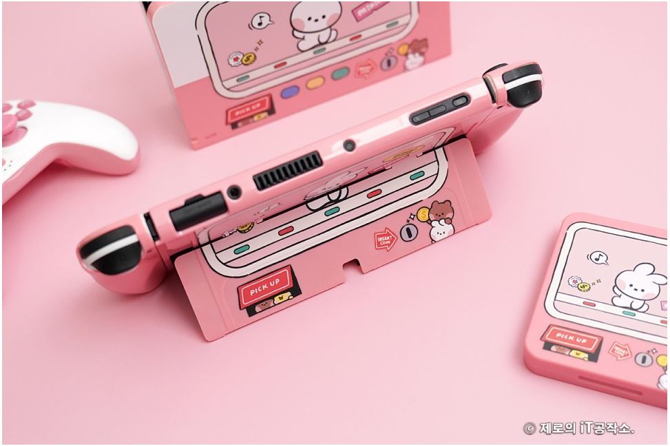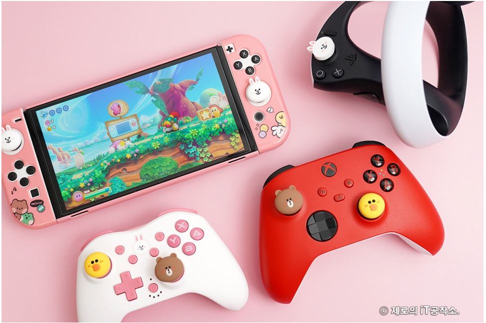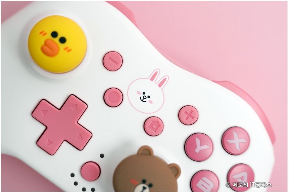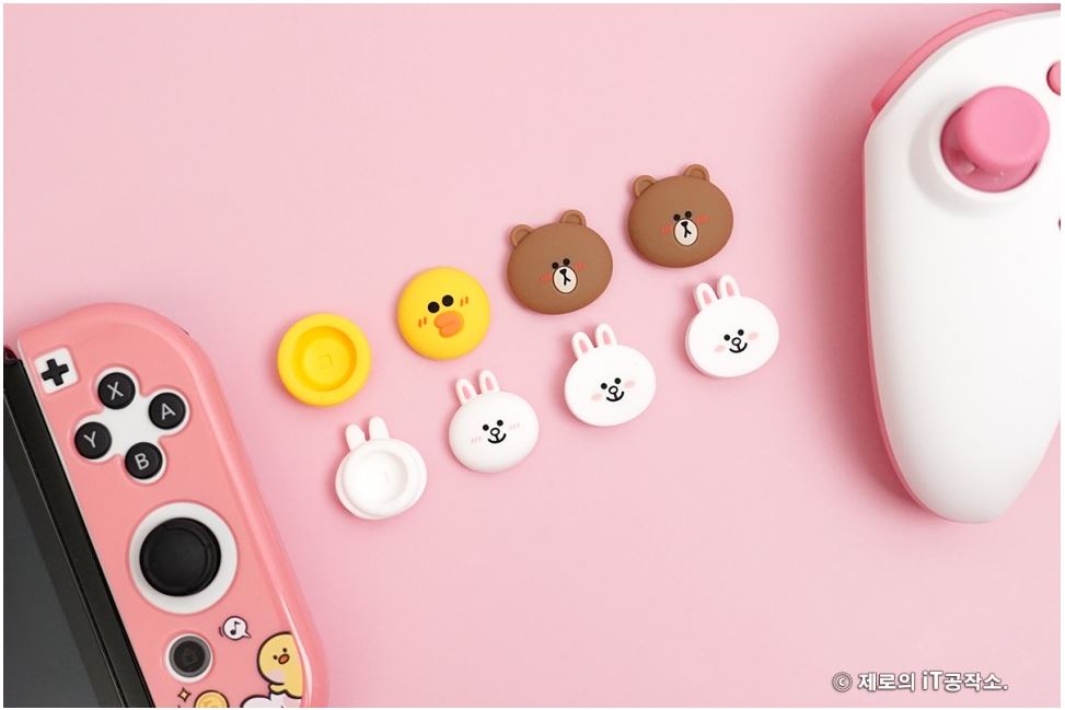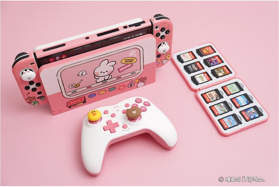 다양한 종류들이 치열한 경쟁을 하고 있는 시장이기도 합니다. ![]() 이에 겜맥은 보다 경쟁력을 갖추기 위해 라인 프렌즈와 콜라보 하여 그들만의 매력을 담은 귀여운 모습으로 다양한 악세사리를 내놓았는데요. 케이스부터 무선 컨트롤러까지 닌텐도 스위치 OLED 악세사리 올인원 솔루션 소개해 드립니다. ![]() NINTENDO SWITCH OLED ACCESSORIES GAMMAC LINE FRIENDS EDITION. ![]() ![]() 이번 겜맥 라인 프렌즈 에디션은 닌텐도 스위치 OLED를 위한 올인원 악세사리로써 보호 케이스부터 TV 독 케이스, 게임칩 케이스, 무선 컨트롤러, 스틱 커버까지 관련 모든 구성을 준비하였습니다. ![]() 물론 개별 구매가 가능한 형태이며 리뷰로 준비한 코니니 이외에도 라인 프렌즈의 인기 캐릭터인 브라운, 코니, 샐리, 초코, 브니니, 샐리니, 초니니도 있어 개성에 맞게 꾸밀 수 있습니다. ![]() 그중에서도 닌텐도 스위치 OLED를 구매하면 가장 먼저 고민하게 될 보호 케이스부터 귀염포텐 마구 터지는 디자인을 자랑하는데요. 토끼 캐릭터인 코니니 버전은 핑크 컬러로 되어 있어 특히 여성분들에게 사랑받을 디자인입니다. ![]() ![]() 본체부터 조이콘까지 풀 커버 보호되는 것은 기본 깔끔하고 정확한 마감까지 군더더기 없는 퀄리티를 자랑하며 커버를 씌우고 난 뒤에도 조작성, 기능성 차이 없이 사용할 수 있습니다. ![]() ![]() 또한 닌텐도 스위치 OLED만의 기능인 프리 스톱 힌지 부분까지 덮개를 적용하여 (붙어있는 것은 아님) 어색한 부분 없이 라인 프렌즈만의 디자인을 누릴 수 있고요. ![]() 조이콘 커버 역시 탄력 있는 PVC 소재를 사용하여 장시간 사용해도 늘어나거나 벗겨지는 현상이 없으며 유광 코팅, 그립 디자인을 적용하여 조이콘의 단점인 그립감도 개선해 줍니다. ![]() 닌텐도 스위치 TV 독 역시 빼놓을 수 없는 필수 구성인데요. 이를 위한 전용 커버도 있어 본체와 함께 제대로 된 깔 맞춤 세팅을 할 수 있습니다. ![]() 얇은 닌텐도 스위치 OLED 케이스 덕분에 TV 독과 그대로 혼용 가능한 것은 덤! 오히려 없을 때 보다 유격 없이 딱 맞아서 더 마음에 들었네요. ![]() ![]() 닌텐도 스위치를 사용하다 보면 하나둘 증식하는 게임칩(게임팩)의 보관도 번거로워질 때가 오게 되는데요. 이를 위한 전용 케이스까지 있어 최대 12개의 타이틀을 간편하게 보관이 가능합니다. 디자인도 라인 프렌즈 에디션답게 투박하지 않아 휴대하기에도 좋습니다. ![]() ![]() 아직 만족하기엔 이릅니다. 겜맥은 무선 컨트롤러까지 라인 프렌즈 에디션으로 출시하였는데요. 사이즈도 기본 게임패드에 비해 작고 가볍게 제작하여 어른 못지않게 많은 어린 유저층을 가진 닌텐도 스위치를 위해 오랜 시간 사용해도 부담 없이 즐길 수 있는 환경을 제공해 줍니다. 또한 마찰력 높은 스틱, 인체공학 그립 디자인 등을 적용하여 무선 컨트롤러로써 기본적으로 갖추어야 할 요소들도 훌륭하고요. ![]() 닌텐도 스위치에 맞춰 설계된 무선 컨트롤러인 만큼 스크린샷, 깨우기 기능은 기본 NFC까지 내장하여 아미보 인식 기능까지 탑재하고 있습니다. ![]() ![]() 또한 상단 트리거 레버, 버튼, C 타입 충전 포트, 배면 매크로 버튼까지 작지만 어지간한 일반 게임패드에 못지않은 기능들을 빠짐없이 갖추고 있죠. (트리거 레버는 원클릭 방식) ![]() 자석으로 고정된 커버 분리 기믹도 내장하여 다른 종류의 라인 프렌즈 무선 컨트롤러를 추가로 구매한다면 서로 번갈아가며 좀 더 개성 있는 모습으로 만들 수도 있습니다. ![]() ![]() 여기에 디테일한 모습으로 캐릭터를 형상화한 스틱 커버까지 있어 겜맥 무선 컨트롤러 이외에도 다양한 게임패드에 장착하여 디자인 드레스업과 좀 더 향상된 조작감으로 즐길 수 있게 만들 수 있습니다. 사이즈도 두 가지라 스틱의 종류에 맞춰 사용도 가능하고요. ![]() ![]() ![]() 무선 컨트롤러는 닌텐도 스위치 이외에도 X-INPUT 등을 지원하여 PC, 안드로이드와 블루투스 및 유선으로 연결하여 다양하게 활용이 가능합니다. 배터리 지속시간은 약 20시간으로 여유로운 수준. ● 안드로이드는 블루투스 연결만 가능. ![]() 이 밖에도 배면의 매크로 버튼을 이용하여 필살기와 같은 커맨드 스킬류를 원버튼으로 간단하게 시전이 가능하며 연타가 힘든 L3, R3와 같은 버튼을 맵핑하여 편리하게 사용할 수도 있습니다. ![]() ![]() 3단계로 속도 조절 가능한 터보 기능까지 있어 단순 연타 콤보나 슈팅에서 연사 스킬 같은 손가락의 피로도를 가중시키는 액션을 좀 더 편하게 만들어 줄 수도 있죠. ![]() ![]() 여기에 강도 조절 가능한 듀얼 진동모터까지 탑재하여 정말 작지만 고성능 무선 컨트롤러 부럽지 않은 제품이었는데요. 케이스부터 게임패드까지 구성 하나하나 알찼던 겜맥 라인 프렌즈 닌텐도 스위치 OLED 액세서리였습니다. ![]() 한방에 고민 해결을 위한 추천 겜맥 라인 프렌즈 ![]() ![]() 닌텐도 스위치 OLED를 들여오고 나서 사용했던 액세서리들 돌이켜보면 부위별로 전부 따로 국밥이었습니다. 그렇다 보니 통일성, 호환성 등 부족한 부분들이 몇몇 있을 수밖에 없었지요. 하지만 이번 겜맥의 라인 프렌즈 에디션은 본체부터, TV 독, 조이콘, 게임칩 그리고 무선 컨트롤러까지 모