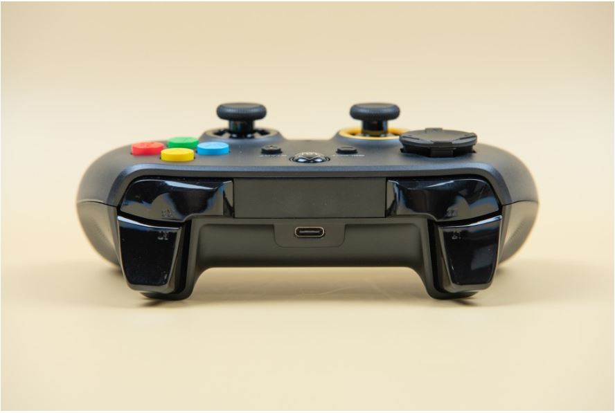 전면에는 유선 연결 혹은 충전 시 케이블을 연결하는 C타입 단자와 LB, LT/좌측 트리거, RB, RT/우측 트리거 버튼이 위치하고 있다.