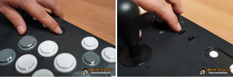 ![]() 아케이드 조이스틱 겜맥 에이펙스 안드로이드 스틱 스트리트 파이터 2를 무선으로! ![]() ![]() 안녕하세요. 영원한 콘솔 게이머 스파이크입니다. 오늘은 겜맥 에이펙스 유무선 아케이드 조이스틱을 소개해볼까 하는데, 제가 그동안 여러 제품을 사용하고 소개를 했지만 무선을 지원하면서 안드로이드 스틱으로 활용 가능한 제품은 이번이 처음인 것 같네요. 콘솔끼리 돌려서 사용할 수 있을 때 범용성을 논하지만 과연 스마트폰, 태블릿 지원만큼 뛰어난 범용성이 있을까요? |겜맥 에이펙스 아케이드 조이스틱 오픈 ![]() 유선 조이스틱은 케이블이 거추장스러운 대신 인풋렉으로 고통받을 일이 없고, 무선 조이스틱은 편리한 대신 인풋렉이 있을 가능성이 큽니다. 그런데 요즘 무선 기술이 워낙 발달해서 정말 민감한 사람이 아닌 이상 이 차이를 체감하기 힘들죠. 게다가 양쪽을 모두 지원해버리면 이는 더이상 단점으로 볼 수 없습니다. ![]() 겜맥 에이펙스 안드로이드 스틱은 양쪽을 모두 지원하며 범용성도 좋아서 대단히 쓸모있단 말씀을 드리고 싶네요. ![]() 박스 전면을 보면 지원 기종이 나와있는데 PS4, 닌텐도 스위치, PC, 안드로이드를 지원하는 것을 알 수 있습니다. 플스쪽이 전세대 지원이라 조금 아쉬운 감이 있지만 만약 PS5 지원이었다면 현재로써 절대 가성비를 맞출 수 없었을 겁니다. 대신 PS5에서 PS4 게임을 구동하면 전부 무난하게 작동하니 여기에 대해선 걱정하지 않으셔도 좋구요. ![]() 구성품은 아케이드 조이스틱 본체와 사용 설명서, USB 동글, 유선 케이블입니다. | 겜맥 에이펙스 안드로이드 스틱 기능 및 디테일 ![]() 우선 외관을 살펴봅니다. 디자인은 전체 블랙에 다소 투박하다고 느껴질 수 있겠지만 모서리에 전부 라운드 처리가 되어서 날카로움이 전혀 없고 마감도 좋습니다. 아이들이 만져도 아무 걱정할 필요가 없겠죠. 사이즈는 약 350 x 200 x 50mm로 타제품만큼 크다고 볼 순 없지만 그만큼 휴대가 편리하다는 이점이 있고 무게는 약 2kg으로 사이즈에 비해서는 꽤 묵직한 편입니다. 이 제품은 콘솔 뿐 아니라 스마트 기기와의 연동도 생각해야 해서 과도하게 키우지 않고 중간 지점을 찾았다는 느낌이 있네요. ![]() 본체 바닥면을 보면 6개의 고무 지지대가 미끄럼 방지 역할을 하고 있는 것을 알 수 있구요. ![]() 레버는 국내에서 가장 널리 쓰이는 무각 가이드가 채용되어서 웬만한 기술은 무리없이 잘 나갑니다. 사탕 레버가 아니라 몽둥이 레버가 채용되어 손에 더욱 감기는 느낌이고, 덕분에 스트리트 파이터 2, 철권 시리즈를 즐기는데 유리해 보이더군요. 개인적으로 버추어 파이터 시리즈는 4각이나 8각이 편했습니다. ![]() 버튼의 탄성도 너무 과하지 않으면서 적절한 느낌. 기본 8버튼 외에도 셀렉트 & 스타트, 매크로 버튼이 들어가서 총 12개의 버튼이 상단에 자리잡고 있는 것을 알 수 있습니다. 겜맥 아케이드 조이스틱은 메크로 입력을 지원하는데, 이는 대전격투 게임에서 자주 사용하는 커맨드를 버튼 하나에 지정함으로써 해당 기술을 쉽게 사용하게 해주는 기능입니다. 사용 방법은 터보 버튼과 매크로 버튼(M1 또는 M2)을 동시에 3초동안 누르고 플랫폼 전환 다이얼에 LED가 들어 오면 기술 입력을 시작, 설정 완료 후 매크로 버튼을 1회 더 눌러주면 됩니다. 해제를 원한다면 기술 입력만 생략 하고 같은 과정을 되풀이해주면 되는데 개인적으로 붕운쌍을 입력해보고 싶었지만 정확한 입력이 좀 어렵네요. ㅎㅎ ![]() 위에서 말씀드린 플랫폼 전환 다이얼입니다. 이 다이얼이 존재함으로써 플스4, 닌텐도 스위치, 안드로이드, PC의 4기종 전환이 매끄럽죠. 자세한 사용 방법은 아래에서 다루기로 하구요. 플랫폼 전환 다이얼의 우측엔 2개의 스위치가 보이는데, 좌측은 레버 입력 변환(+에 맞추면 아날로그 스틱, ○에 맞추면 십자키), 우측은 전원 스위치입니다. 겜맥 에이펙스 아케이드 조이스틱은 무선 제품이라 스위치 ON/OFF가 필수이며 450mAh 배터리가 내장되어서 최대 10시간을 사용할 수 있습니다.(대기 시간은 약 450시간) ![]() 본체 상단 센터에는 시프트, 홈, 터보 버튼이 준비되어 있는데 당연히 터보 기능도 지원됩니다. 사용 방법은 터보 버튼과 원하는 버튼을 동시에 눌러주면 끝~ 1회 클릭 시 수동 연사, 2회 클릭 시 자동 연사, 3회 클릭시 터보가 해제되는 순입니다. 연사 입력은 초당 5회, 12회, 20회의 3단계가 준비되어 있으며 기본은 12회, 만약 낮추고 싶다면 터보 버튼과 레버 ↓를 동시에 누르면 되고, 올리고 싶다면 ↑을 동시에 눌러주면 됩니다. ![]() 아케이드 조이스틱 본체 측면에는 꽤 넓찍한 수납 공간이 준비되어서 뚜껑을 열면 USB 동글과 유선 연결용 케이블이 담겨있는 것을 알 수 있습니다. 필요에 따라 사용해주면 되겠구요. ![]() 후면에는 유선 케이블 연결을 위한 포트가 준비된 것을 알 수 있습니다. 참고로 케이블은 충전 케이블로도 사용되기 때문에 배터리 충전 시에도 이쪽을 통해 연결해주시면 됩니다. 급할 때는 보조 배터리를 써도 작동이 잘 되더군요. | 겜맥 에이펙스 안드로이드 스틱 각 기종 연결 방법 ![]() ▶ 플레이스테이션4 우선 가장 많은 대전격투 게임을 